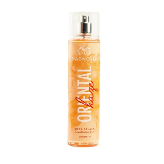 Magnolia Oriental Haze Body Splash ينساب على البشرة كنسمة دافئة يغمرها هدوء المساء، ويبدأ بموجة لطيفة من الفواكه الحلوة ذات اللمحة المتبّلة بخفة والتي تمنح دفئاً ناعماً يشبه توهج الغروب، ثم يتفتح في قلب حريري من الزهور الرقيقة الملامسة لحلاوة شرقية خفيفة؛ ومع استقراره، يرتفع حجاب ناعم من المسك الكريمي والعنبر ليمنح إحساساً دافئاً ومريحاً يترك أثراً ضبابياً أنيقاً يستحضر هدوء ليلة دافئة يغمرها ضوء ذهبي خافت.