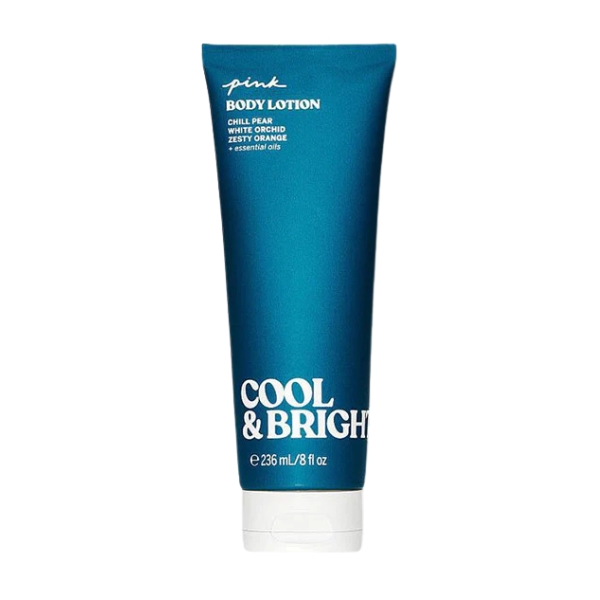 VICTORIA'S SECRET PINK BODY LOTION COOL & BRIGHT يلامس البشرة بانتعاشٍ لطيف يشبه نفحة هواء بارد، حيث يمتزج قوامه الخفيف والناعم مع رائحة مشرقة ومنعشة تمنح إحساسًا كأنها رشة باردة عند شروق الشمس. يمتصه الجلد بسرعة، مما يخفف الجفاف ويترك البشرة ناعمة ورطبة ومشرقة برفق، بينما تبقى رائحته النظيفة المنعشة — مزيج من نسمات فاكهية باردة وهواء ندي — عالقة بخفة. النتيجة لوشن نابض بالانتعاش يمنح ترطيبًا مريحًا ويلف البشرة بإحساس بارد ومنشط يرافقك طوال اليوم بصفاء مشرق وسهل.