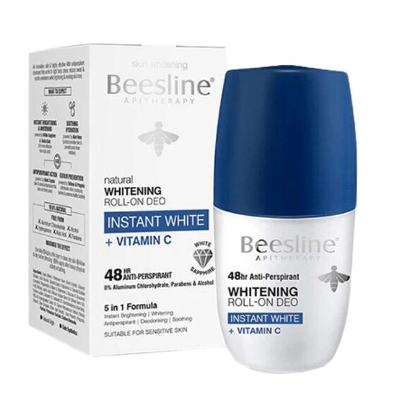 Beesline Instant White Whitening Roll-On Deodorant ينزلق على البشرة بسلاسة بملمس خفيف سريع الامتصاص يحافظ على انتعاش منطقة الإبط وراحتها، ويمنح تأثير تفتيح لطيفًا من أول استخدام؛ ومعزز بفيتامين C والنياسيناميد ومستخلصات نباتية مهدّئة، يعمل على توحيد لون البشرة وتقليل مظهر البقع الداكنة مع الوقت، ويوفّر حماية موثوقة من الروائح دون مكوّنات قاسية، تاركًا منطقة الإبط ناعمة وجافة ومشرقة بلطف مع إحساس منعش يدوم طوال اليوم.