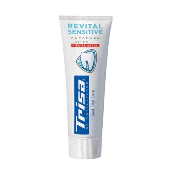 Trisa Toothpaste Revital Sensitive 75 ml هو معجون أسنان يومي لطيف صُمّم خصيصًا للأسنان واللثة الحساسة، حيث يساعد على تهدئة الشعور بعدم الراحة مع توفير حماية فعّالة ضد التسوّس؛ وتعمل تركيبته الخفيفة منخفضة الكشط على تنظيف شامل دون تهيّج، مع دعم قوة مينا الأسنان وصحة اللثة، ليترك الفم بإحساس منعش ومريح، بينما يجعل حجم 75 مل منه خيارًا مثاليًا للاستخدام المنزلي المنتظم ضمن روتين عناية مخصص للأسنان الحساسة.
