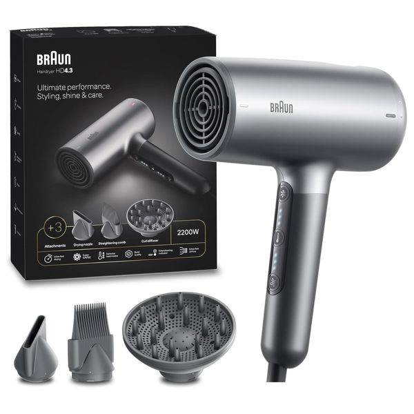 Braun Hair Dryer HD4.3 – 2200W with Diffuser, Straightening Comb & Drying Nozzle