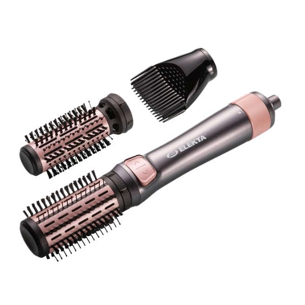 Elekta Rotating Hot Air Styler هو أداة تصفيف متعددة الاستخدامات مصممة لتجفيف وتصفيف الشعر في الوقت نفسه، حيث يجمع بين قوة الهواء الساخن وفرشاة دوّارة لابتكار نتائج ناعمة ومليئة بالحجم بأقل مجهود. تساعد تقنية تدفق الهواء الدوّار على تشكيل الشعر بشكل متوازن مع تقليل الهيشان وتعزيز اللمعان الطبيعي، مما يجعله مناسبًا للتصفيف اليومي أو للحصول على إطلالات أنيقة ومصقولة. وبفضل تعدد إعدادات الحرارة والسرعة لتناسب مختلف أنواع الشعر، والبرميل المطلي بالسيراميك الذي يضمن توزيعًا لطيفًا ومتساويًا للحرارة، إلى جانب التصميم المريح وسهل الاستخدام، يوفّر هذا المصفف تحكمًا مريحًا ونتائج احترافية تمنحك تسريحات تشبه صالونات التجميل، من تموجات ناعمة إلى حجم إضافي في المنزل.