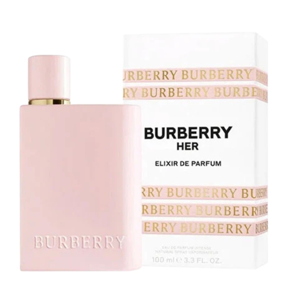 Burberry Her Elixir Eau de Parfum هو عطر جريء وحسي وكثيف يعكس جوهر الأنوثة العصرية، إذ يبدأ بنفحات غنية من الفراولة والتوت الأسود تمنحه طابعًا فاكهيًا نابضًا بالحياة وداكنًا في الوقت نفسه. يتوسطه عبير الياسمين الراقي الذي يضيف لمسة زهرية أنيقة، بينما تستقر القاعدة على مزيج دافئ وكريمي من الفانيليا والعنبر وخشب الصندل، ليمنح العطر إحساسًا غنيًا يميل قليلًا إلى الغورماند، مع جاذبية حلوة وإدمانية تعبّر عن الثقة والحرية.