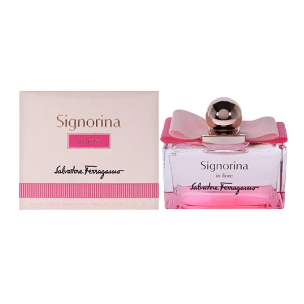 Salvatore Ferragamo Signorina In Fiore Eau de Toilette هو عطر زهري فاكهي مشرق ومفعم بالبهجة للنساء، يحتفي بتفتح الربيع ورقة الأنوثة الشابة. تبدأ رائحته بنفحات منعشة من سوربيه كمثرى ناشي والرمان، تليها طبقة قلبية ناعمة من أزهار الكرز والياسمين، ثم تستقر القاعدة على مزيج رقيق من المسك الأبيض وخشب الصندل الكريمي، ليمنح العطر لمسة أنثوية دافئة تنبض بالحيوية والأناقة الطبيعية.