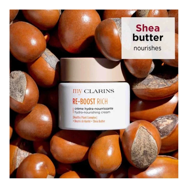 كريم Clarins RE-BOOST Rich Hydra-Nourishing Cream هو مرطب مكثف صُمم لتوفير الراحة والتغذية للبشرة الجافة إلى شديدة الجفاف مع تعزيز الترطيب لمدة 24 ساعة. يتميز بقوامه الغني والمريح، المدعوم بمزيج من مستخلص الكالانشو العضوي، المعروف بقدرته على جذب الماء، وزبدة المانجو البرية المغذية لترطيب عميق وتقوية حاجز الرطوبة في البشرة. ينصهر الكريم على البشرة ليمنح إحساسًا فوريًا بالراحة ويخفف شعور الشد والانزعاج، تاركًا البشرة ناعمة وملساء ومرنة. مثالي لمن يحتاجون إلى ترطيب مكثف، حيث يوفر تغذية مستمرة وإشراقة صحية ورطبة دون أي شعور بالثقل أو الدهنية.