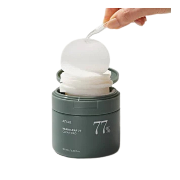 وسادات Anua Heartleaf 77% Clear Pad مزدوجة الجوانب مصممة للتقشير والتهدئة، وتوفر عناية يومية لطيفة للمسام وتحسين ملمس البشرة. يتميز أحد الجوانب بسطح ناعم الملمس مع تموجات دقيقة للتقشير الفيزيائي، لإزالة خلايا الجلد الميتة وتنعيم البقع الخشنة، بينما الجانب الآخر ناعم وملائم للتطبيق المهدئ مع توصيل المكوّن الأساسي: 77٪ من خلاصة Heartleaf (Houttuynia Cordata). هذا المكوّن القوي والمهدئ يعمل على تهدئة التهيج فورًا، وتقليل الاحمرار، وتقوية حاجز البشرة، مما يضمن أن يكون التقشير متوازنًا وغير مهيّج. مُعزز بحمض PHA لتقشير كيميائي لطيف إضافي، تساعد هذه الوسادات على إزالة الشوائب، تنقية المسام، وترك البشرة صافية ومتوازنة ومنتعشة.