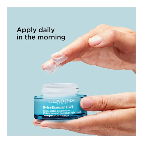 كريم Clarins Hydra-Essentiel [HA²] Light Cream هو جل-كريم خفيف ومنعش خالٍ من الزيوت، مصمم لتوفير ترطيب مكثف يدوم 24 ساعة للبشرة المختلطة إلى الدهنية. يعتمد على مركب Hydra-Essentiel [HA²] الحصري الذي يجمع بين حمض الهيالورونيك ومستخلص نبات الكالانشو العضوي، المعروف بقدرته على جذب الرطوبة ومساعدة البشرة على امتصاصها والاحتفاظ بها من البيئة والطبقات العميقة. يمتاز بقوام خفيف سريع الامتصاص يمنح البشرة دفعة فورية من الترطيب دون أي لمعان أو إحساس دهني، مما يتركها منتعشة ومتوازنة وذات مظهر ممتلئ ونضر. يعد الخيار المثالي لمن يبحثون عن ترطيب عميق مع لمسة نهائية خفيفة ومطفية تناسب الاستخدام اليومي.