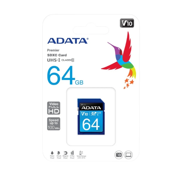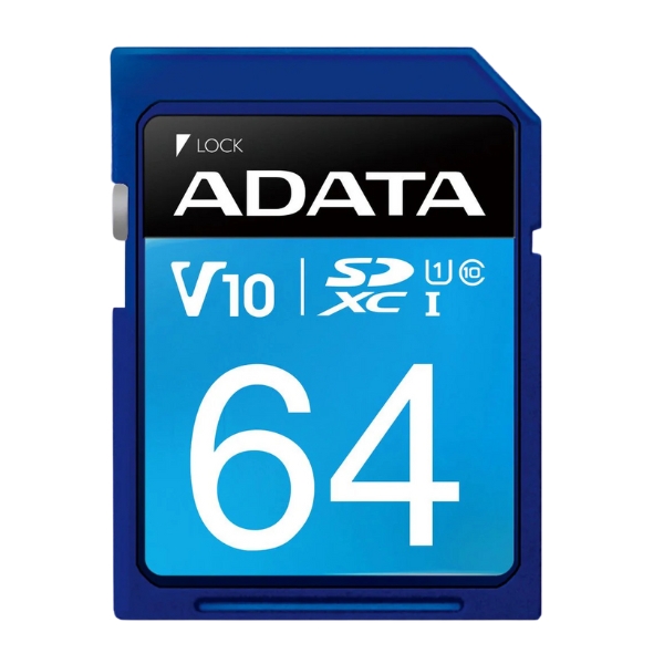 بطاقة الذاكرة ADATA Premier Memory Card SDA 3.0 - 64GB - SDXC UHS-I هي بطاقة SDXC UHS-I عالية السرعة مثالية لتخزين الصور ومقاطع الفيديو بشكل موثوق.