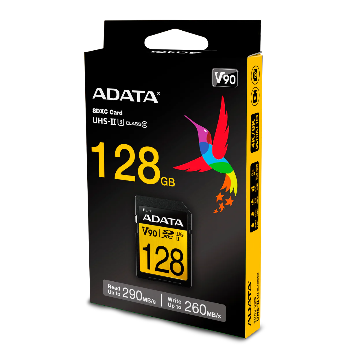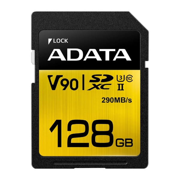 تُعد ADATA Premier ONE 128GB SDXC UHS-II U3 Class10 V90 3D NAND 4K 8K Ultra HD 290MB/s SD Card بطاقة ذاكرة احترافية مصممة للتصوير الفوتوغرافي عالي الدقة وتسجيل الفيديو بدقة فائقة، بما في ذلك محتوى 4K و8K. مع واجهة UHS-II وفئة السرعة V90، توفر سرعات قراءة وكتابة فائقة تصل إلى 290 ميجابايت/ثانية، مما يضمن نقل بيانات سلس، وتقليل التخزين المؤقت، وأداء موثوق للكاميرات والطائرات بدون طيار والأجهزة الإعلامية الأخرى.