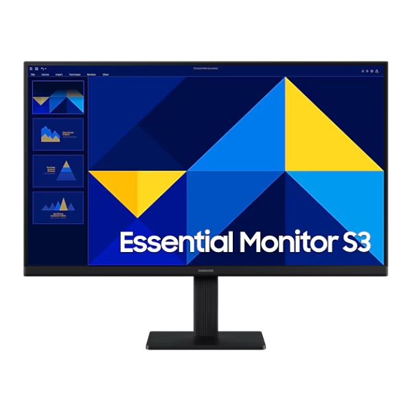 Samsung Essential S3 S30GD 24" FHD IPS Monitor – 100Hz, 5ms GTG, 250 nits, 178° Viewing Angle, VESA Mount, HDMI Input يقدم صورًا واضحة وحيوية بفضل شاشة IPS بدقة FHD بحجم 24 بوصة. مع معدل تحديث 100 هرتز وزمن استجابة 5 مللي ثانية، يضمن أداءً سلسًا وسريع الاستجابة للعمل والترفيه. كما أن زاوية الرؤية الواسعة 178°، ودعم التثبيت على الحامل VESA، ومدخل HDMI توفر المرونة والراحة لأي إعداد.