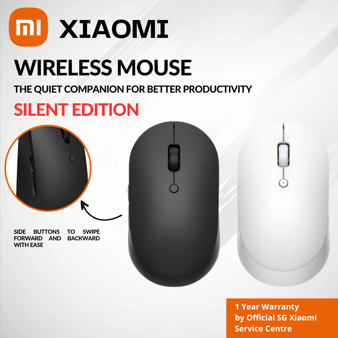 The Xiaomi Mi Dual Mode Wireless Mouse Silent Edition is designed for quiet, flexible multitasking. It supports dual connectivity — 2.4 GHz wireless with a USB receiver and Bluetooth 4.2 — allowing you to switch between two paired devices easily. Its silent microswitches reduce click noise without sacrificing tactile feedback. The 1300 DPI precision sensor offers smooth tracking, while the ergonomic design and lightweight build provide comfortable daily use. (mi.com)