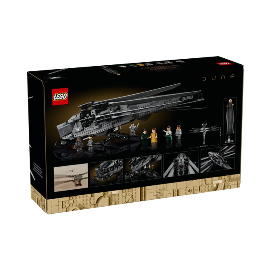 مجموعة ليغو أيقونات: طائرة أورنيثوبتر الملكية لبيت أتريدس 10327 هي نموذج مصمم بعناية لعشاق ليغو البالغين من عمر 18 سنة فما فوق، تحتوي على 1,369 قطعة. تعيد هذه المجموعة إنشاء الطائرة المستوحاة من اليعسوب من فيلم Dune: Part One لعام 2021، مع أجنحة قابلة للطي وقابلة للحركة، معدات هبوط قابلة للنشر، وكابينة قيادة مفتوحة تتسع لدميتين مصغرتين. يبلغ ارتفاع النموذج أكثر من 23 سم، وطوله 57 سم، وعرضه 79 سم مع الأجنحة الممتدة. تتضمن المجموعة ثماني دمى مصغرة: بول أتريدس، ليدي جيسيكا، غارني هاليك، تشاني، ليتو أتريدس، ليت كينيس، دنكان إيداهو، وبارون هاركونن. تم إصدار هذه المجموعة في 1 فبراير 2024، وتقدم تجربة بناء مجزية وتعد قطعة عرض لافتة لأي محب لفيلم Dune.