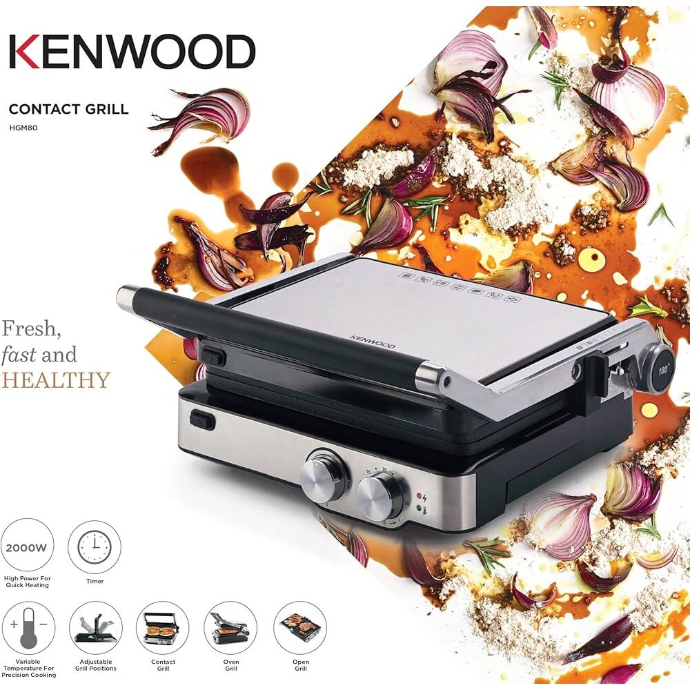 Kenwood Health Grill HGM80 – 2000W, 3 Grilling Positions, Adjustable Temperature Control, Timer