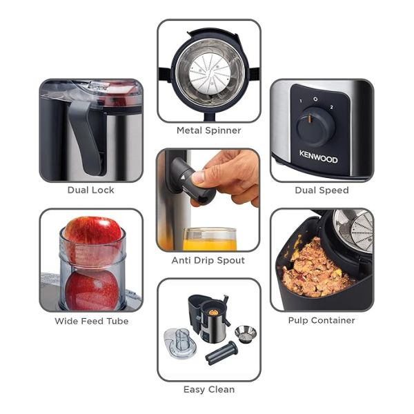 Kenwood JEM50 Juice Extractor – 700W, 75mm Wide Feed Tube, 2-Speed, Anti-Drip, Dishwasher-Safe