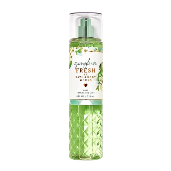 Bath & Body Works Gingham Fresh Body Mist delivers a bright, uplifting bouquet where juicy pear and sparkling clementine open the scent with fresh, zesty energy. Soft floral notes of daisies and hints of delicate violet petals join the fruitiness, giving a clean-floral vibe that feels airy and cheerful. Underneath, a subtle clean musk (and occasionally faint powdery or “fresh linen” vibes) adds a gentle base that keeps the fragrance light and wearable. The overall impression is crisp, youthful, breezy, and perfect for everyday wear — ideal for spring or warm weather when you want a fresh, happy scent without heaviness.