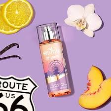 Hollister Body Mist "Santa Monica" drapes the skin in a breezy, sunny-California glow, opening with a bright splash of lemon and juicy peach that feels like a warm coastal morning, then blooming into a soft bouquet of rose petals that adds a fresh, floral sweetness. As the scent dries down, gentle hints of warm amber and earthy patchouli emerge, grounding the mist with a subtle sensual warmth. The overall effect is youthful, radiant and effortlessly carefree — an airy, fruity-floral aura perfect for a light, everyday fragrance that evokes a laid-back beach-town mood.