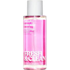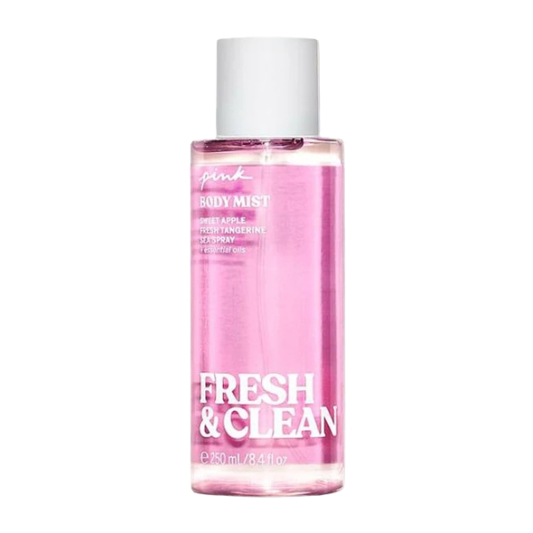 VICTORIA'S SECRET PINK BODY MIST FRESH & CLEAN is a bright, breezy mist that feels like opening your window to a cool morning burst of fresh air. It begins with a lively splash of crisp apple and clean, dewy freshness that instantly uplifts the senses. As it settles, the fragrance softens into a light, airy blend of soft florals and gentle musk, creating a smooth, just-showered purity that lingers effortlessly on the skin. The overall impression is sparkling, youthful, and refreshingly simple — perfect for days when you want to feel naturally clean and beautifully awake.
