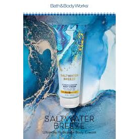 Bath & Body Works Saltwater Breeze Body Cream sweeps over the skin with a crisp, airy freshness that feels like standing at the edge of the sea. The scent blends clean “fresh linen” brightness with watery florals, soft violet leaves, and a smooth white-musk finish, creating a cool, breezy aura. Its creamy texture melts in deeply, enriched with shea butter, cocoa butter, aloe, vitamin E, and hyaluronic acid to deliver long-lasting moisture, ease dryness, and leave the skin soft, hydrated, and lightly veiled in a clean coastal glow.