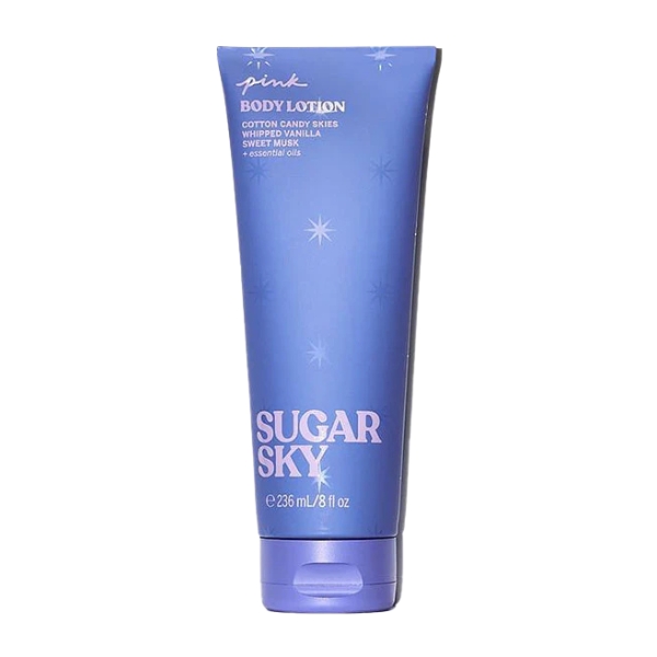 VICTORIA'S SECRET PINK BODY LOTION SUGAR SKY drapes the skin in a soft, airy veil of hydration, blending a light creamy texture with a bright, sweet scent that feels like a pastel sky just warming into daybreak. Its silky formula absorbs quickly, soothing dryness and leaving the skin supple, smooth, and lightly scented with a whisper of sugary freshness carried on a cool, breezy undertone. The result is a gentle, comforting lotion that keeps the skin moisturized while surrounding you with a delicate, uplifting sweetness that lingers with calm ease.