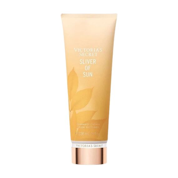 VICTORIA'S SECRET SLIVER OF SUN FRAGRANCE LOTION drifts across the skin with a warm, silky glow, releasing a radiant, sunlit sweetness that feels like catching the first golden beam of morning light. Its creamy, lightweight texture absorbs effortlessly, easing dryness and leaving the skin soft, supple, and subtly luminous. The fragrance blends gentle warmth with a bright, lightly sweet aura — a soft shimmer of sunshine wrapped in a breezy, uplifting freshness that lingers with quiet comfort. The result is a smooth, fragrant lotion that envelopes the skin in lasting hydration and a warm, glowing scent that feels both cozy and bright.