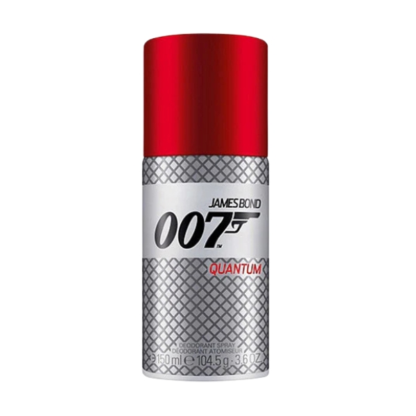 JAMES BOND 007 QUANTUM DEODORANT SPRAY delivers a sharp, confident burst of masculine freshness inspired by the bold, dynamic spirit of the Quantum fragrance, opening with energizing notes that mix crisp citrus brightness with a subtle aromatic edge to create an immediate sense of alertness and control. As it settles, warm, refined undertones of woods and spice add depth and sophistication, leaving a smooth, modern trail that feels both powerful and polished. Its lightweight, quick-drying formula offers reliable all-day odor protection while keeping the skin comfortable, fresh, and subtly scented with the unmistakable character of 007.