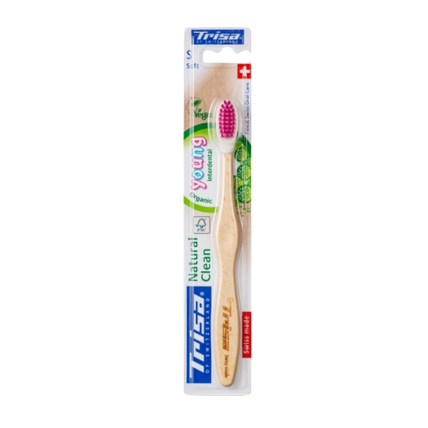 Trisa ToothB Natural Clean Young is a gentle toothbrush designed specifically for young users, featuring soft bristles and an ergonomic shape to comfortably and effectively clean developing teeth while caring for sensitive gums and promoting healthy oral hygiene habits.