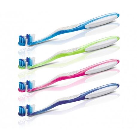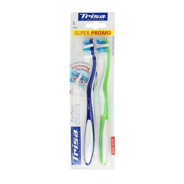 Trisa ToothB Perfect White Duo Soft is a twin-pack of gentle toothbrushes with soft bristles designed to help lift surface stains and brighten your smile while providing comfortable, effective daily cleaning, leaving your teeth feeling refreshed and polished with every use.