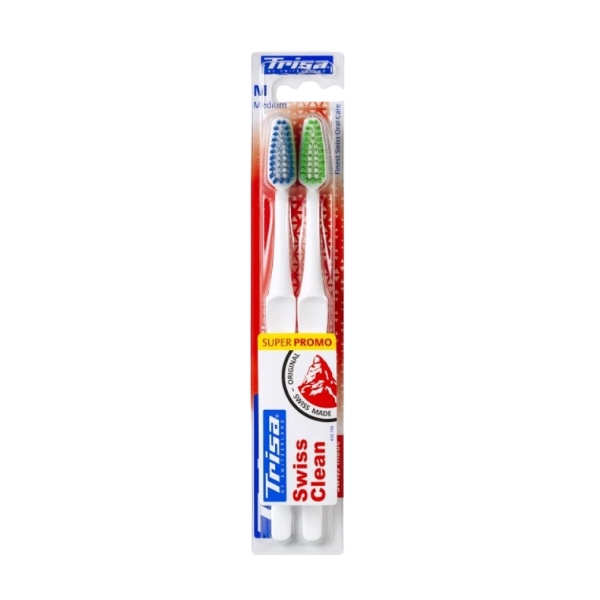 Trisa ToothB SwissClean Medium is a high-quality toothbrush designed with medium-strength bristles that deliver effective plaque removal while maintaining comfort for teeth and gums; its well-shaped brush head reaches hard-to-access areas with ease, supporting thorough daily oral hygiene and leaving the mouth feeling clean and refreshed with dependable Swiss precision.