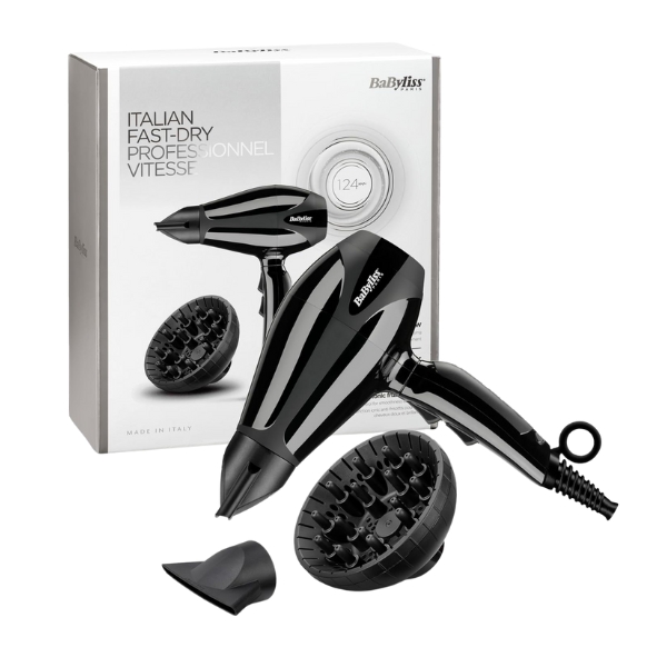 The BaByliss 6715DE Compact Pro 2400 Hair Dryer is a salon-grade drying tool powered by a 2400 W Italian-made AC motor that delivers high-velocity airflow for fast styling. It features ionic and ceramic technologies to reduce frizz and enhance shine, two ultra-thin concentrator nozzles plus a diffuser for versatile styling—whether you want sleek straight looks or voluminous curls—and multiple heat and speed settings including a cool-shot option for setting your look.