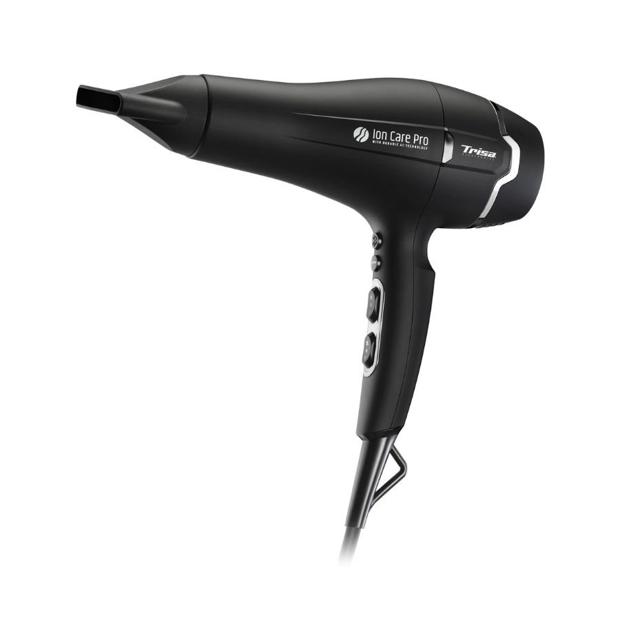 The Trisa Hair Dryer Ion Care Pro is designed to provide professional-quality hair care with advanced ionic technology that reduces frizz and enhances shine. Its powerful airflow ensures fast and efficient drying, while multiple heat and speed settings, along with a cool-shot function, offer versatile styling options. The lightweight and ergonomic design makes it comfortable to handle, delivering smooth, healthy-looking hair every day.