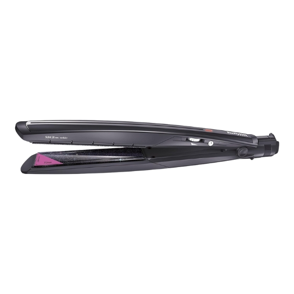 The BaByliss ST326E Protect Slim 28 mm Hair Straightener 235°C - Wet & Dry is a high-performance styling tool designed for efficient, safe, and smooth straightening on both wet and dry hair. Featuring 28 mm slim Diamond Ceramic coated plates, it ensures even heat distribution, reduced friction, and enhanced shine while protecting hair from damage. With 16 adjustable temperature settings ranging from 140°C to 235°C, it provides precise control for all hair types. The floating plates glide effortlessly for a sleek finish, while the swivel cord offers easy movement during styling. For added convenience and safety, it includes a transport lock, LED power indicator, and auto shut-off function, making it an ideal choice for everyday use and professional styling.
