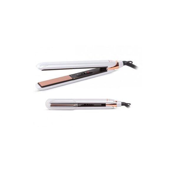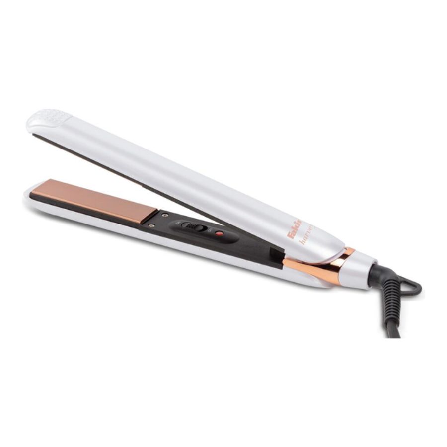 The FAKIR Harvey Hair Straightener – White - 41003350 is a compact, efficient styling tool designed for smooth, shiny results. It features 20 mm tourmaline‑ceramic coated plates that glide easily through hair without pulling or snagging, protecting from breakage and reducing static. The device reaches up to approximately 200 °C for effective straightening and is ready within seconds. With a 360° swivel cord and heat‑resistant protective cap, it’s practical and user‑friendly for everyday use or travel. Its sleek white finish adds elegance to your personal care routine.