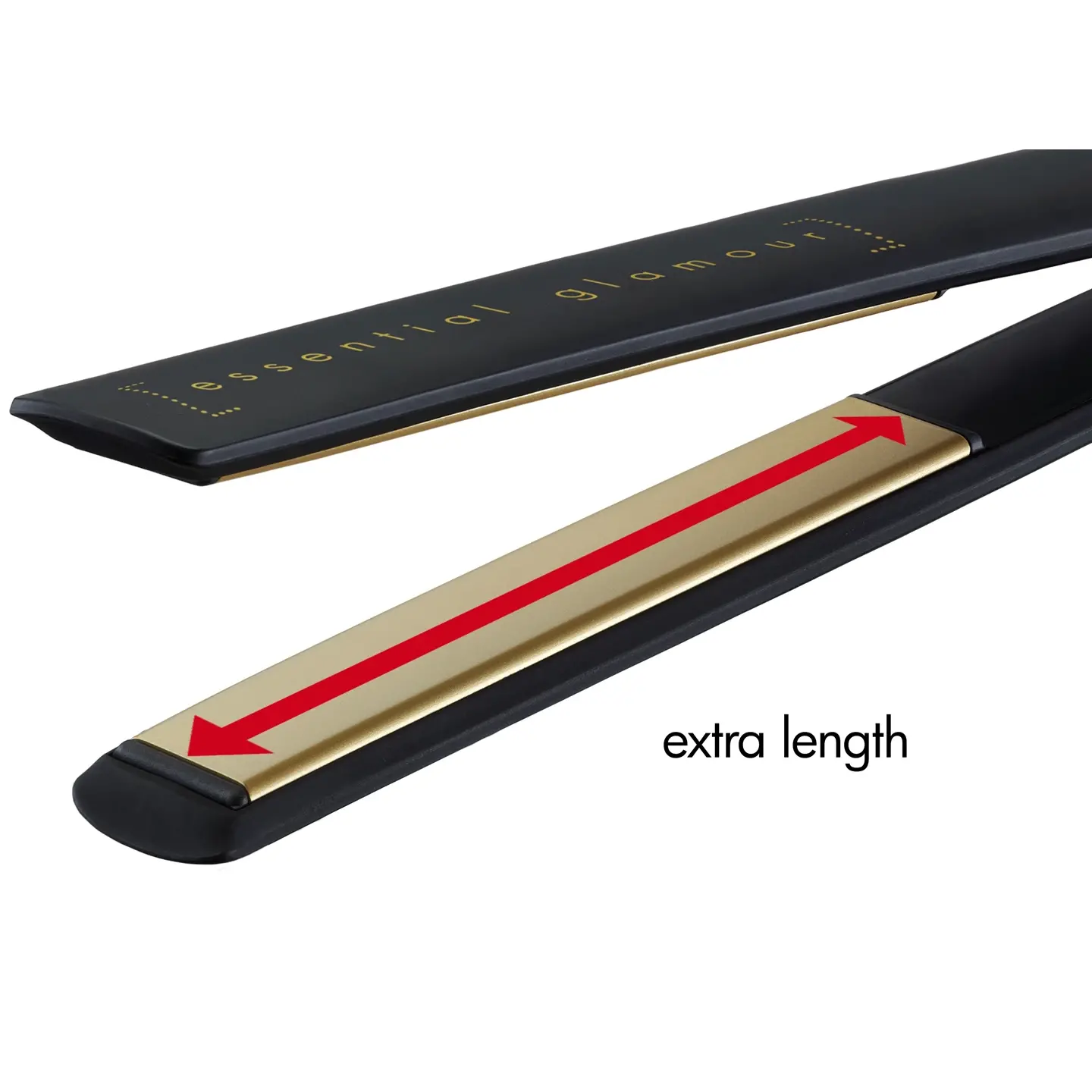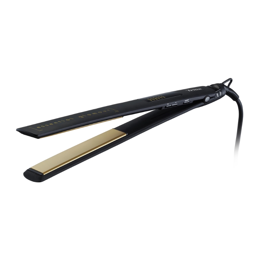 The Trisa Hair Straightener Essential Glamour is designed to provide smooth, sleek, and frizz-free hair with professional results at home. Featuring ceramic plates for even heat distribution, it ensures gentle styling while protecting hair from damage. With adjustable temperature settings and rapid heating, it allows versatile styling for all hair types. Its ergonomic design guarantees comfort during use, making daily styling effortless and efficient.
