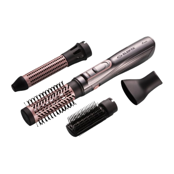 Elekta Hot Air Styler is a multifunctional hair styling tool that combines the power of a blow-dryer with a styling brush to dry and shape hair in one step. Designed for smooth, frizz-free results, it uses hot airflow to gently detangle and style while adding volume and shine. With adjustable heat and speed settings to suit various hair types, a ceramic-coated barrel for even heat distribution, and interchangeable brush attachments, this styler makes it easy to create sleek blowouts, soft waves, or natural body at home. Its ergonomic design ensures comfortable handling and precise control, delivering professional-looking results without the need for multiple tools.