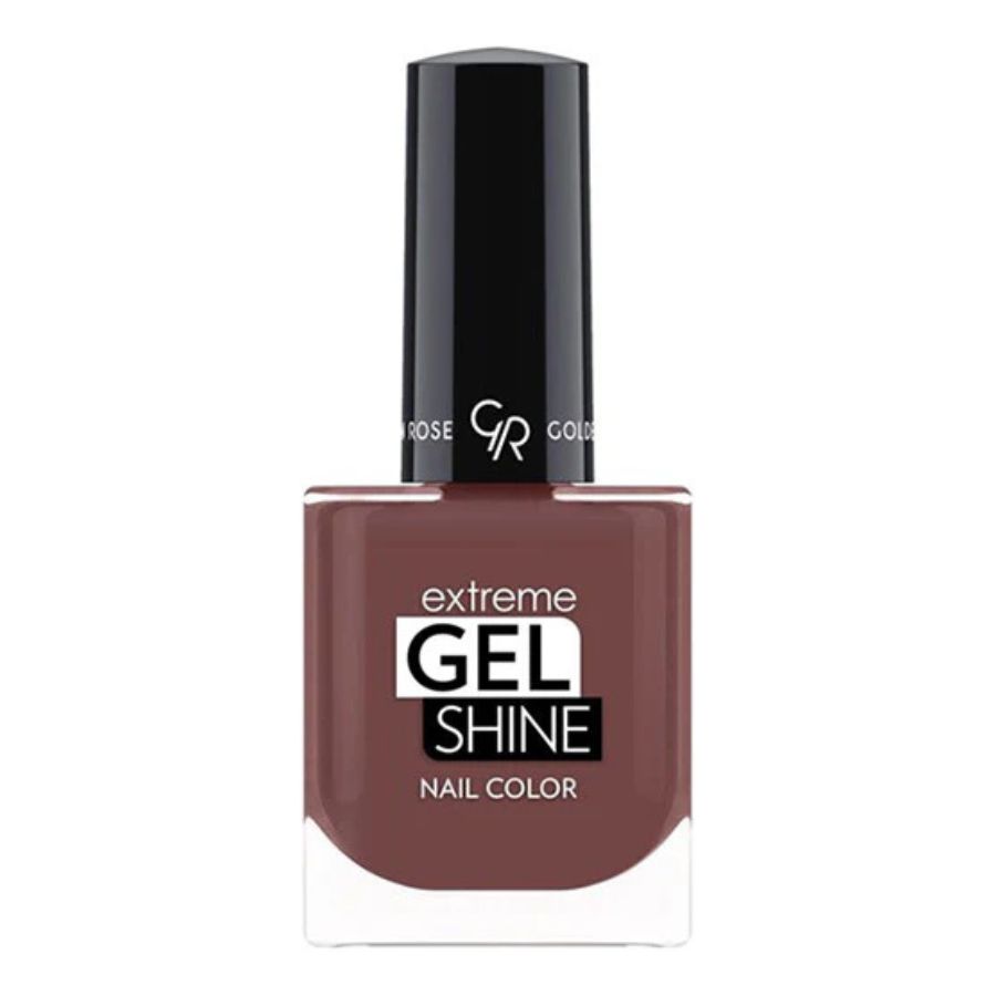 Golden Rose Extreme Gel Shine Nail Color in Shade 56 features a deep, dark brown tone with subtle purple undertones, delivering a rich, glossy, gel-like finish without the need for a UV lamp. The smooth, creamy formula glides effortlessly onto nails, dries quickly, and provides long-lasting vibrant color and shine. Part of a collection of 74 shades, it offers both classic and trendy options for creating polished, sophisticated manicures with ease.