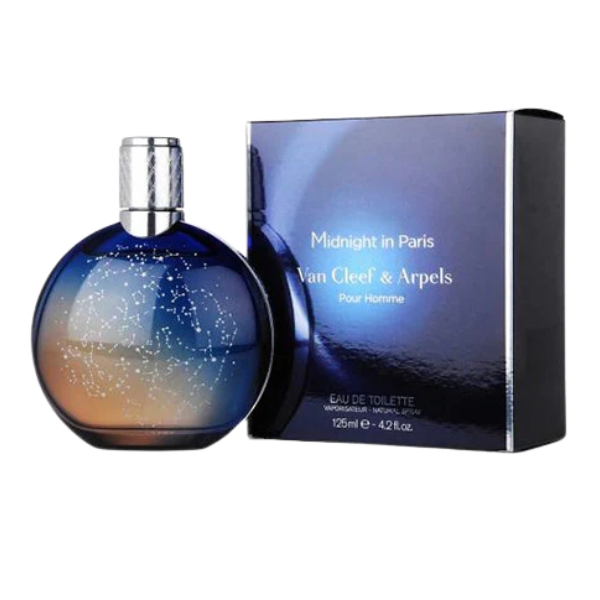 Van Cleef & Arpels Midnight in Paris Eau de Toilette is an elegant and romantic oriental-leathery fragrance designed for men, evoking the mystery and beauty of a starlit night in Paris. It opens with luminous notes of lemon, bergamot, and rosemary, creating a fresh and sophisticated introduction. The heart reveals a refined blend of leather, black tea, and styrax, adding depth and sensuality. Finally, the base of tonka bean, benzoin, almond, and incense delivers warmth and allure, leaving a smooth, comforting trail that feels both luxurious and timeless.