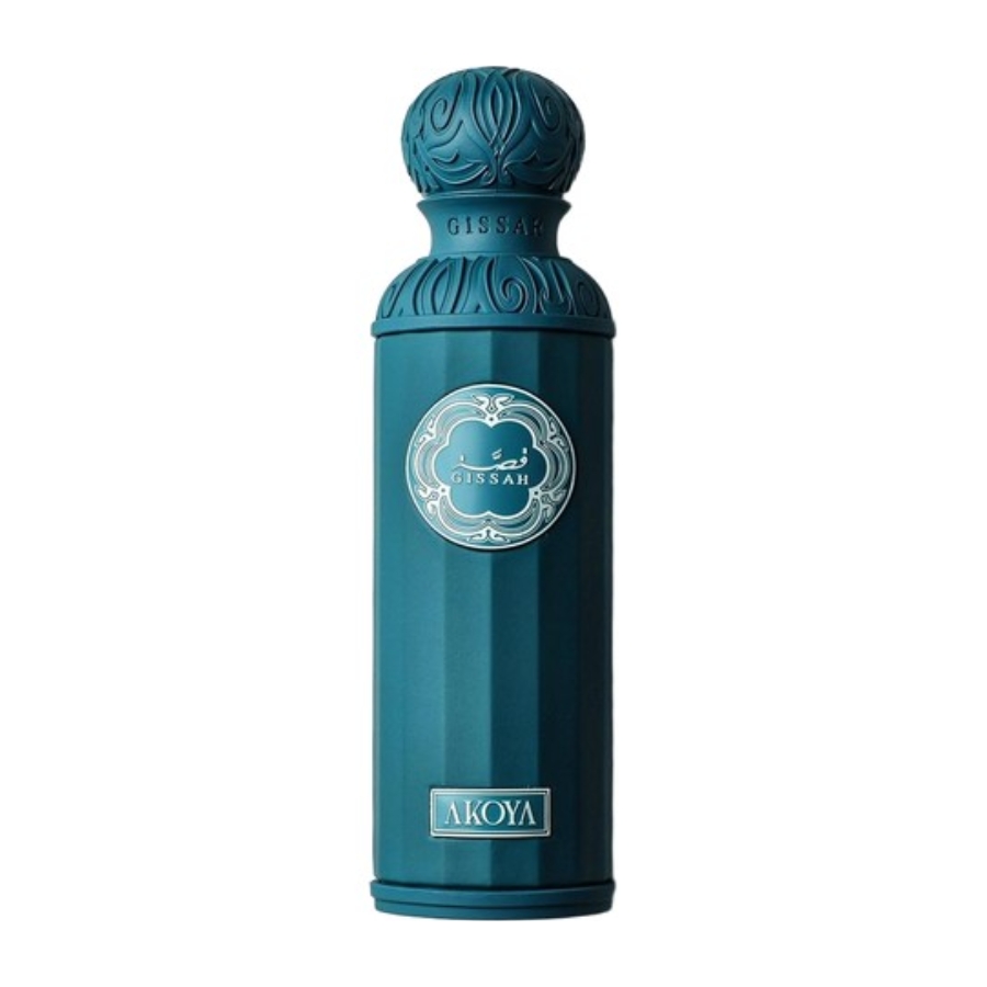 Gissah Akoya Eau de Parfum (Turquoise Bottle), launched in 2024, is a radiant sweet-oriental fragrance that perfectly balances freshness and depth. The scent opens with a luminous blend of bergamot, orange oil, and raspberry, creating an energetic and captivating introduction. At its heart, warm caramel intertwines with aromatic lavender and delicate jasmine, adding a sensual and refined character. The base reveals a sophisticated combination of wood-leather accord, patchouli, and sandalwood, leaving a long-lasting and velvety trail. Akoya is a bold yet elegant expression of confidence and charm — crafted for those who desire distinction and allure.