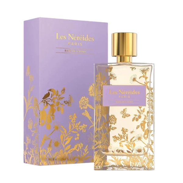 Les Nereides Baie De Cassis EDP is an aromatic-fruity floral fragrance with a subtle green and woody undertone. It opens with a fresh and tart note of blackcurrant bud (cassis), introducing a crisp fruity-green brightness. In the heart, delicate rose petals bloom with a soft floral elegance, adding depth and femininity. The base settles into vetiver, lending an earthy, slightly woody foundation that grounds the sweetness and gives the scent a calm, refined finish. The overall character is light yet expressive, blending fruity freshness with soft florals and subtle woodiness—ideal for daytime wear in spring or summer when you want something graceful and quietly radiant.