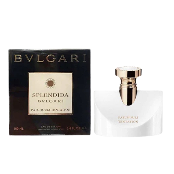 Bvlgari Splendida Patchouli Tentation Eau de Parfum is a luminous and sensual chypre-floral fragrance built around an elegant trio of patchouli, opening with a radiant blend of rich patchouli wrapped in a juicy touch of white peach that adds a bright, inviting freshness, then unfolding into a refined heart where golden patchouli melts into soft, powdery iris for a smooth and feminine floral depth, while the scent finally settles into an earthy, velvety base of deep Indonesian patchouli and silky white musk, leaving a warm, sensual trail that feels both sophisticated and irresistibly intimate.