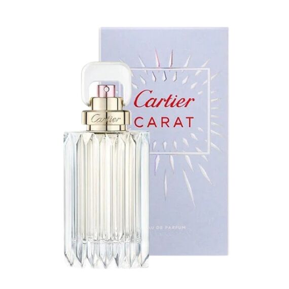 Cartier Carat De Cartier Feminine Eau De Parfum is a luminous and dazzling fragrance that captures the radiance of a bouquet refracted through light, opening with a bright, crystalline freshness inspired by green notes that feel crisp and airy, then blooming into a vibrant heart of seven beautifully faceted florals—lily, hyacinth, ylang-ylang, violet, tulip, honeysuckle, and narcissus—each adding its own delicate hue to create a sparkling, prismatic floral aura, while the scent settles into a soft, subtly warm base that leaves a clean, elegant, and weightless trail reminiscent of light passing through a diamond.