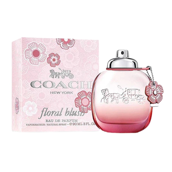Coach Floral Blush Eau de Parfum is a lively and youthful floral-fruity fragrance that opens with a bright burst of goji berries and grapefruit, giving it a juicy, fresh, and slightly tangy start; the heart blossoms into a soft, romantic blend of peony and peach that adds sweetness and feminine charm, while the base settles into smooth white woods and gentle musks, leaving a clean, warm, and gracefully playful trail perfect for everyday elegance.
