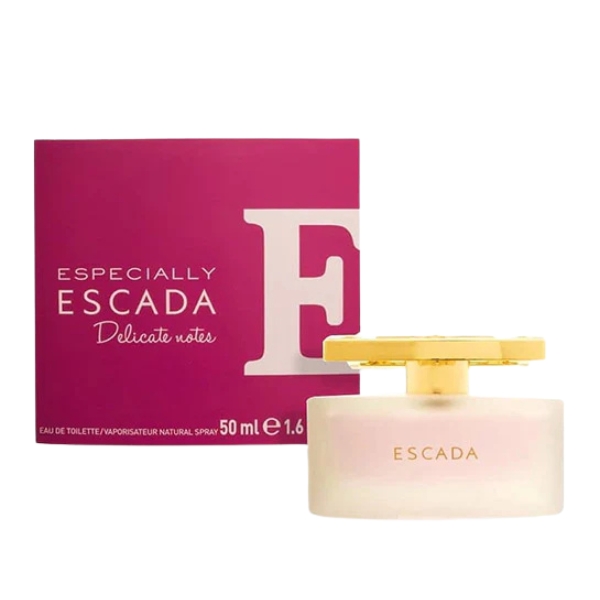 Escada Especially Escada Delicate Notes Eau de Toilette Women is a soft, airy and feminine fragrance that starts with a fresh blend of pear, grapefruit and delicate Japanese rose (hamanasu), creating a crisp and luminous opening. The heart reveals a gentle floral-musky mix of rose, ylang-ylang and ambrette (musk mallow), lending the scent elegance and a subtle sensuality. It then dries down into a warm, clean base of musk and soft woody notes, giving a graceful, understated finish that feels light, airy and perfect for spring or daytime wear.
