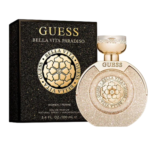 GUESS Bella Vita Paradiso EDP 100 ml is a luminous celebration of feminine elegance and confidence. It opens with bright and juicy top notes of Italian mandarin, pear blossoms and red berries that immediately lift the mood and evoke a sun-lit, joyful atmosphere. In the heart, floral sophistication emerges with jasmine, gardenia and tuberose, offering a rich and graceful bouquet. The dry down settles into warm, inviting base notes of patchouli, amber and musk, giving the scent depth and a subtly sensual trail.