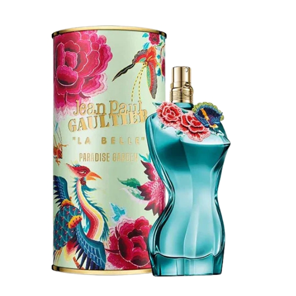 Jean Paul Gaultier La Belle Paradise Garden EDP is a luminous and exotic fragrance for women, opening with delicate blue lotus that evokes a secret tropical lagoon, transitioning into a silky heart of iris for refined elegance, and resting on a warm, inviting base of creamy vanilla that leaves an irresistibly sensual and dreamy trail.