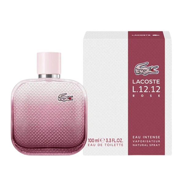 Lacoste L.12.12 Rose Eau Intense EDT is a floral-woody fragrance for women, launched in 2023 as part of the L.12.12 collection. It opens with refreshing top notes of white tea, mandarin and pink pepper, followed by a delicate heart of rose, cotton flower and iris. The base settles into warm, comforting tones of solar musk, sandalwood and cedarwood, creating a scent that beautifully balances purity, softness and radiant femininity.