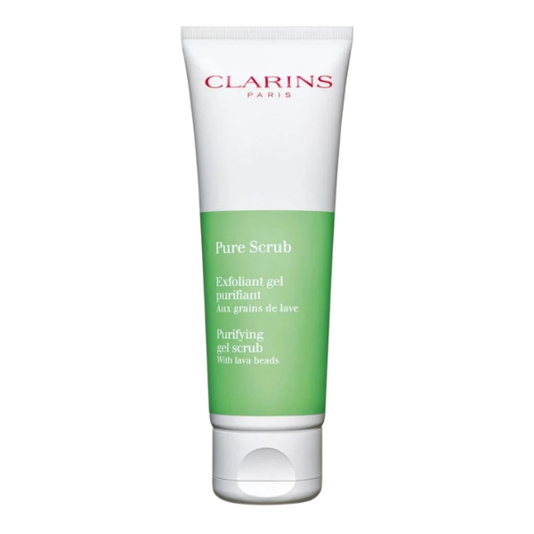 The Clarins Pure Scrub is a purifying gel exfoliator that utilizes natural lava beads from Iceland to provide a thorough yet gentle physical exfoliation. Designed for all skin types, including sensitive skin, the gel-based formula transforms into a creamy lather upon application, allowing the fine, porous lava beads to buff away dead skin cells and surface impurities without causing micro-tears. Enriched with purifying organic kalanchoe extract and moisturizing shea butter, it deeply cleanses congested pores, refines skin texture, and leaves the complexion feeling intensely smooth, refreshed, and visibly brighter, without any tightness or over-drying.