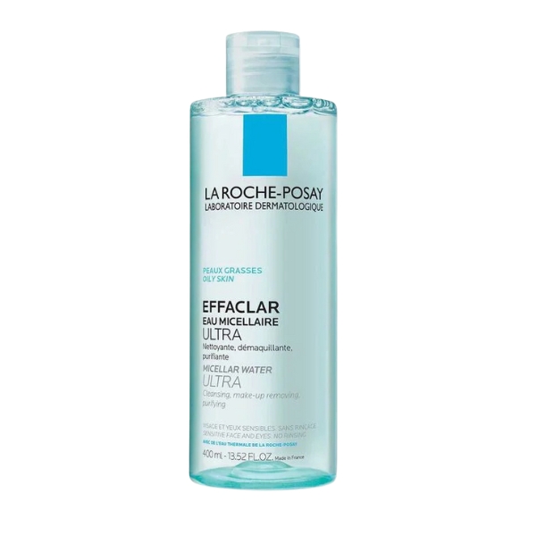 The La Roche-Posay Effaclar Eau Micellaire Ultra Make Up Remover is a gentle, no-rinse micellar water specifically formulated for oily, acne-prone, and sensitive skin. It effectively dissolves and removes long-wear makeup, sunscreen, and excess sebum without stripping the skin or leaving an oily residue. Enriched with La Roche-Posay's signature soothing Thermal Spring Water and the purifying agent Zinc, it helps to mattify the skin and minimize the appearance of pores while calming potential irritation. This non-comedogenic, alcohol-free, and soap-free formula ensures a thorough yet ultra-gentle cleanse, leaving the skin feeling perfectly clean, fresh, and balanced without any tightness.