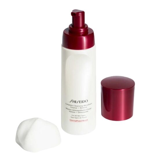The SHISEIDO Complete Cleansing Microfoam is an ultra-fine, lightweight foaming cleanser designed to provide a gentle yet supremely effective cleanse. Upon contact with water, it transforms into a soft, airy microfoam that effortlessly lifts away makeup, sunscreen, and daily impurities without the need for harsh rubbing. Enriched with super hyaluronic acid and a skin-conditioning agent, it cleanses while helping to maintain the skin's essential moisture, leaving it feeling refreshed, smooth, and supple—never tight or dry. This makes it an excellent, non-stripping option for all skin types, including normal to dry or sensitive skin, seeking a thorough and comfortable cleansing experience.