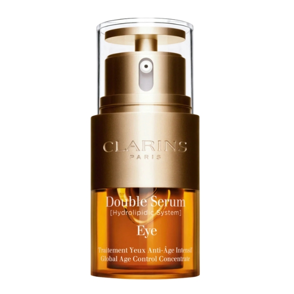The Clarins Double Serum Eye – Under Eye Tightening Cream is a comprehensive anti-aging eye treatment that utilizes a dual-chamber system to combine water-soluble and oil-soluble ingredients for targeted correction. One chamber contains a firming complex with harungana and organic green banana extracts to help tighten eyelids and reduce under-eye bags, while the other chamber holds a hydrating blend with cassia and albizia extracts to smooth wrinkles and dark circles. Upon application, the two textures merge into a lightweight, fast-absorbing cream that delivers 360° correction to the entire eye contour. The result is a visibly firmer, smoother, and more radiant eye area with reduced puffiness and a revitalized appearance.