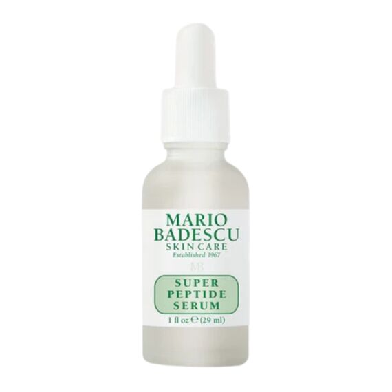 The Mario Badescu Super Peptide Serum is a targeted anti-aging treatment designed to visibly reduce the appearance of wrinkles and improve skin firmness. Its concentrated formula features a blend of Peptides, which are short chains of amino acids that help support the skin's natural collagen production, leading to a smoother and more lifted appearance. This is combined with Hyaluronic Acid to deliver intense hydration, plumping the skin and further minimizing the look of fine lines. The lightweight, fast-absorbing texture makes it an ideal base for moisturizer, working to restore a more youthful-looking complexion with improved elasticity and resilience.